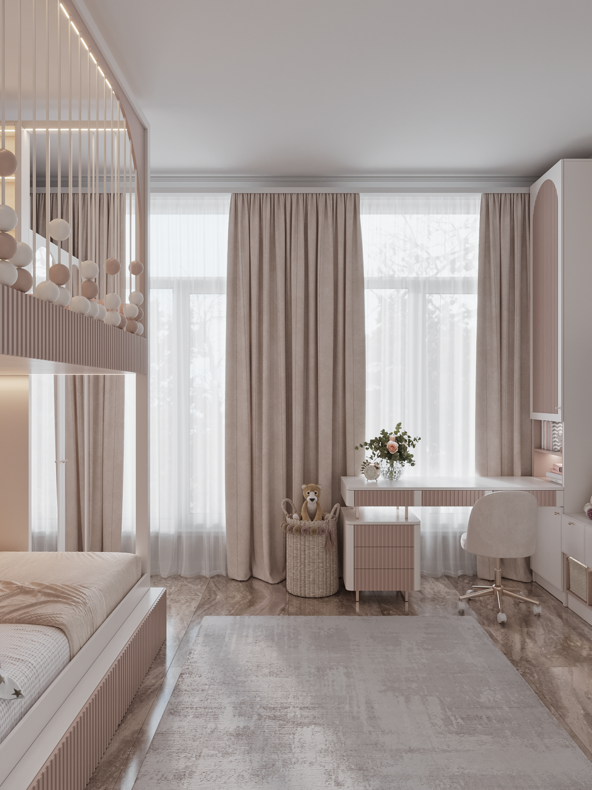Design of a children's room for a girl: play comfort and coziness