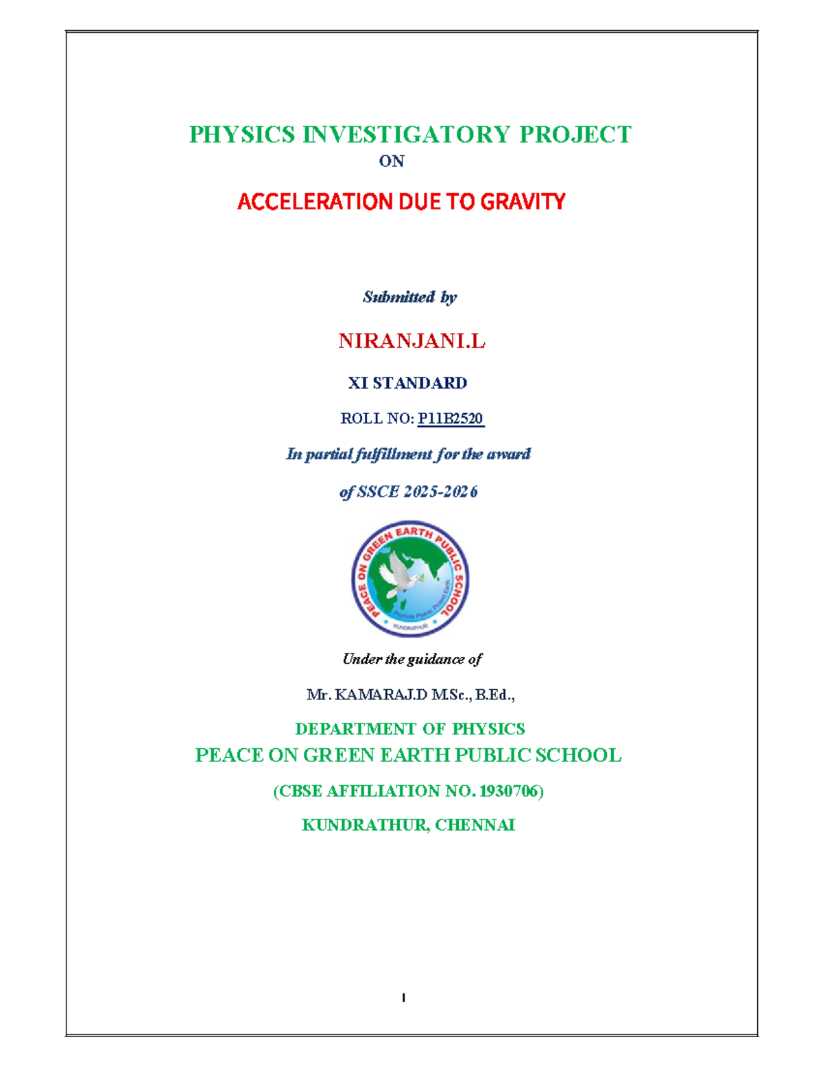 PHYSICS XI PROJECT: ACCELERATION DUE TO GRAVITY (P11B2520) - Studocu
