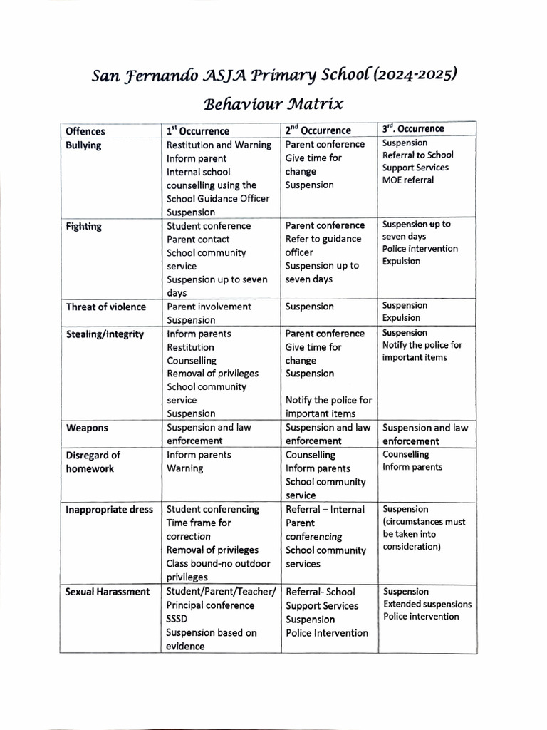 Behaviour Matrix | PDF