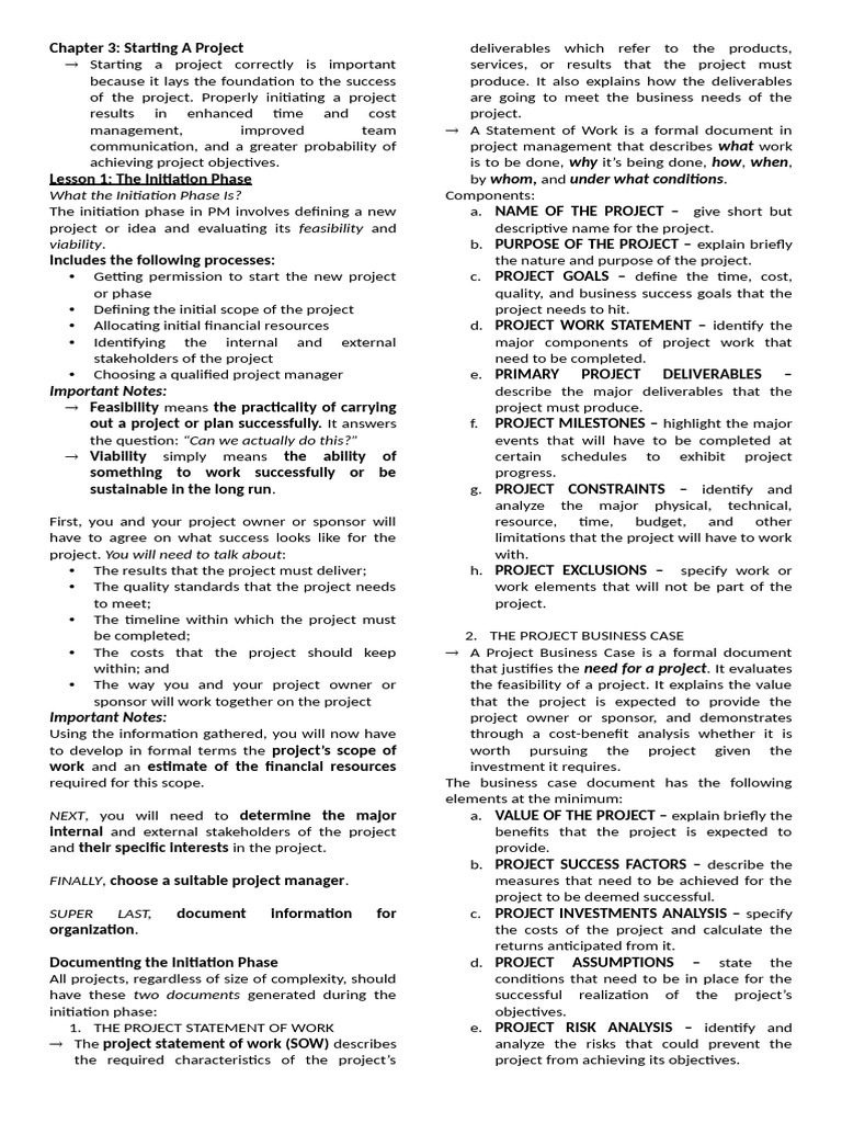 3-Project - CHAPTER 3 Project Management Outline Definitions & Three ...