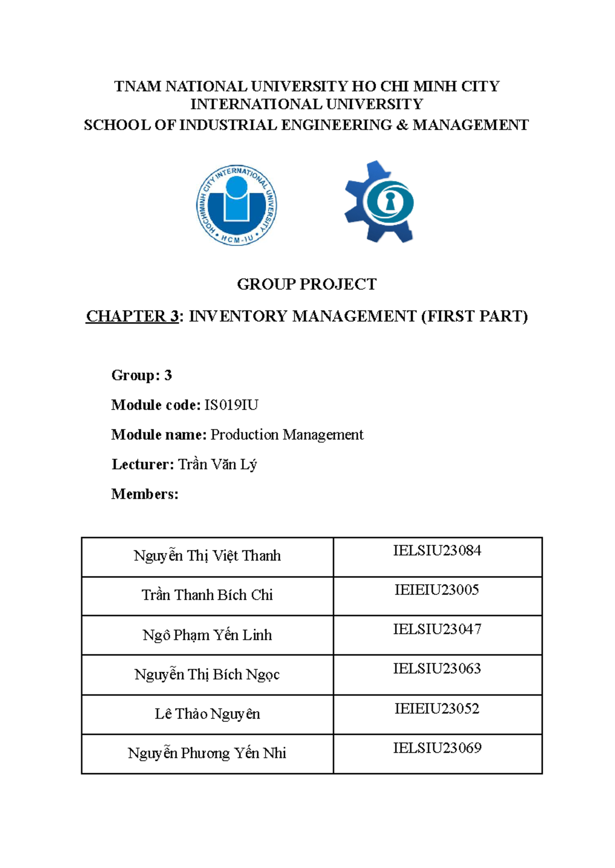 IS019IU Production Management Group Project: Chapter 3 - Inventory ...