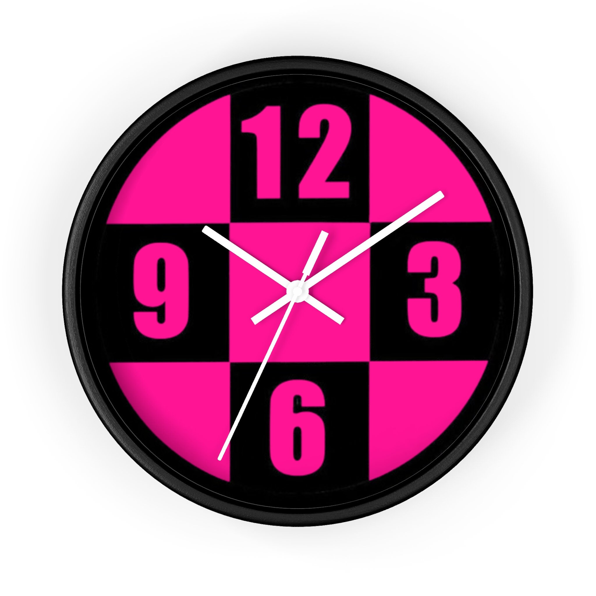 Bright Pink Checkered Wall Clock Retro Checker Print Clock for Girl ...