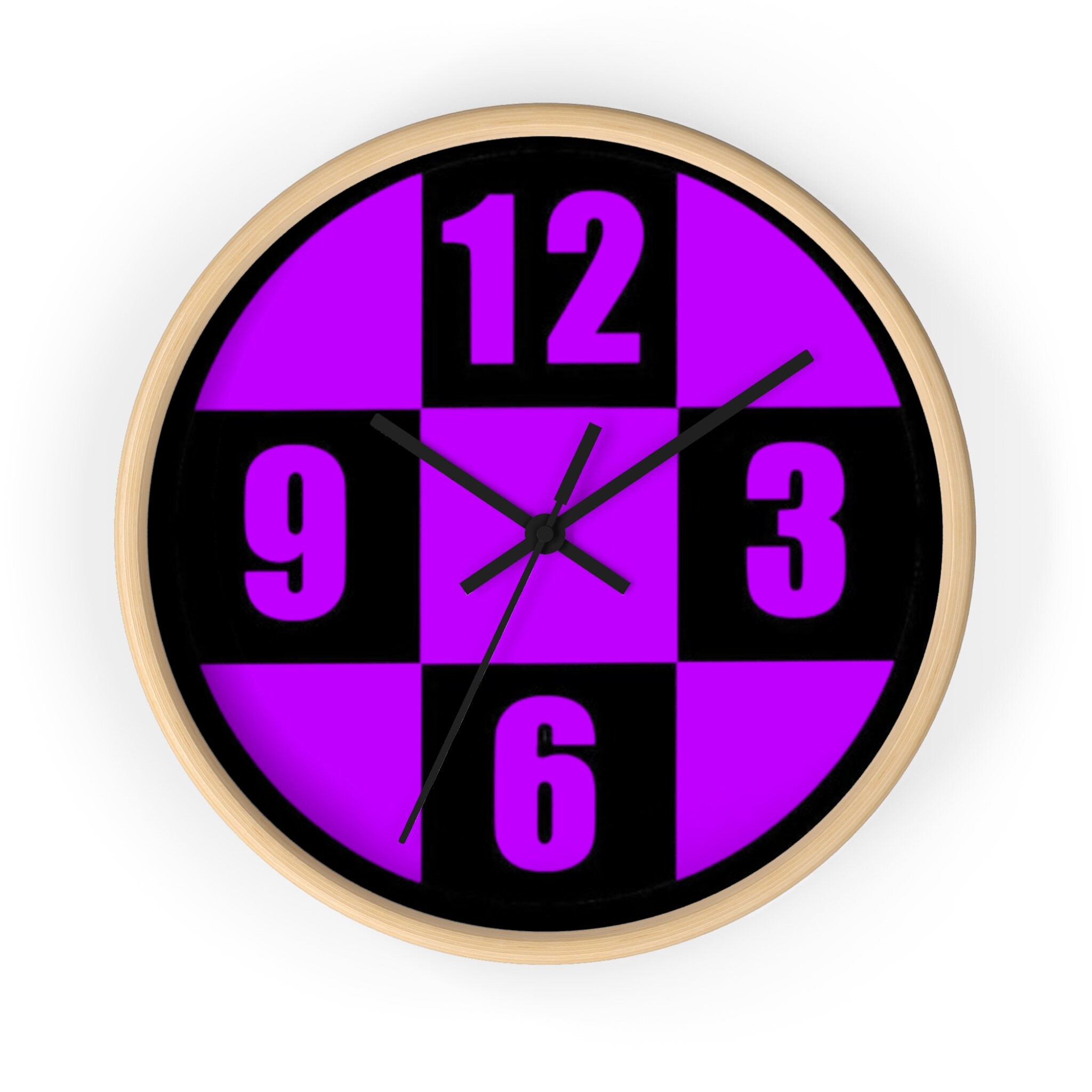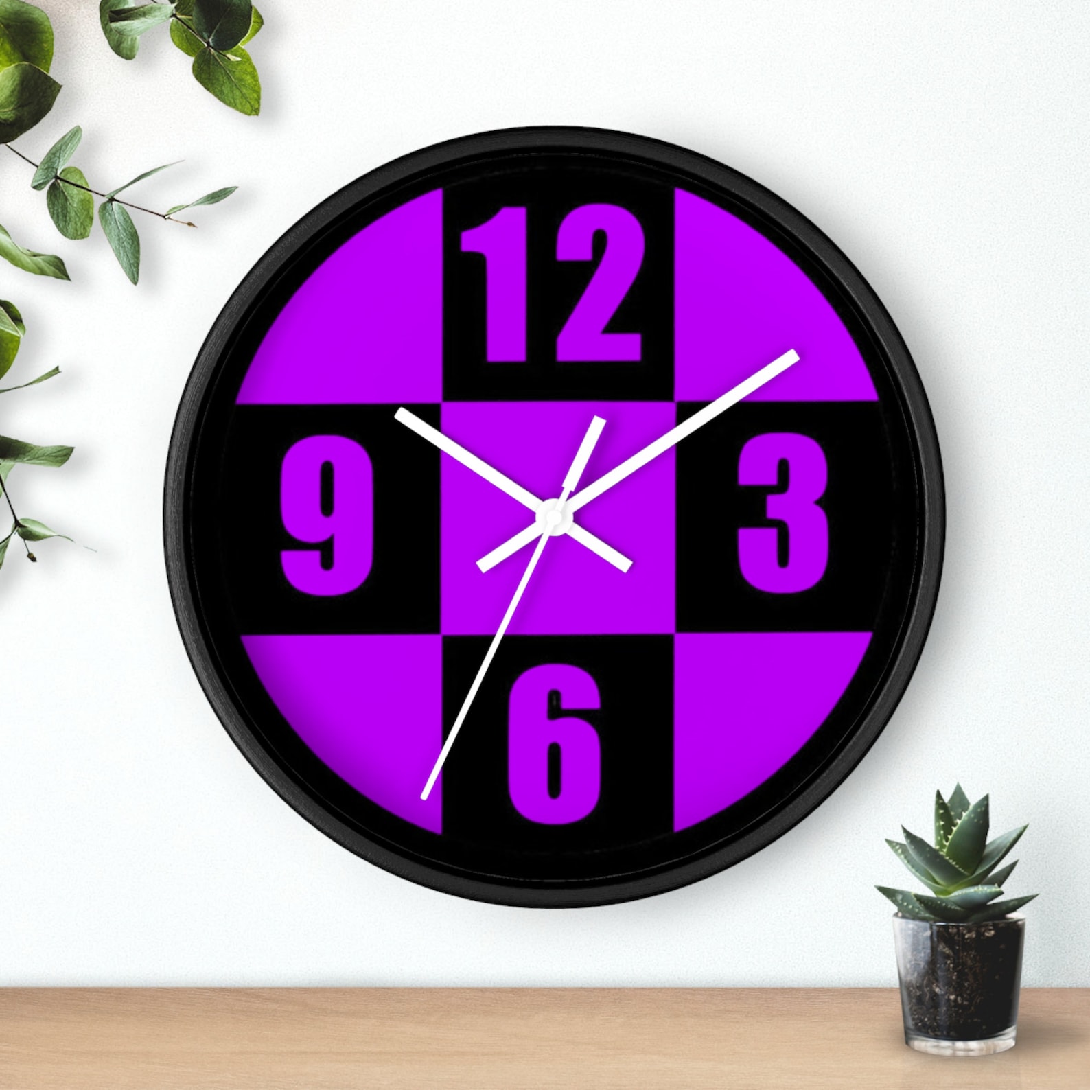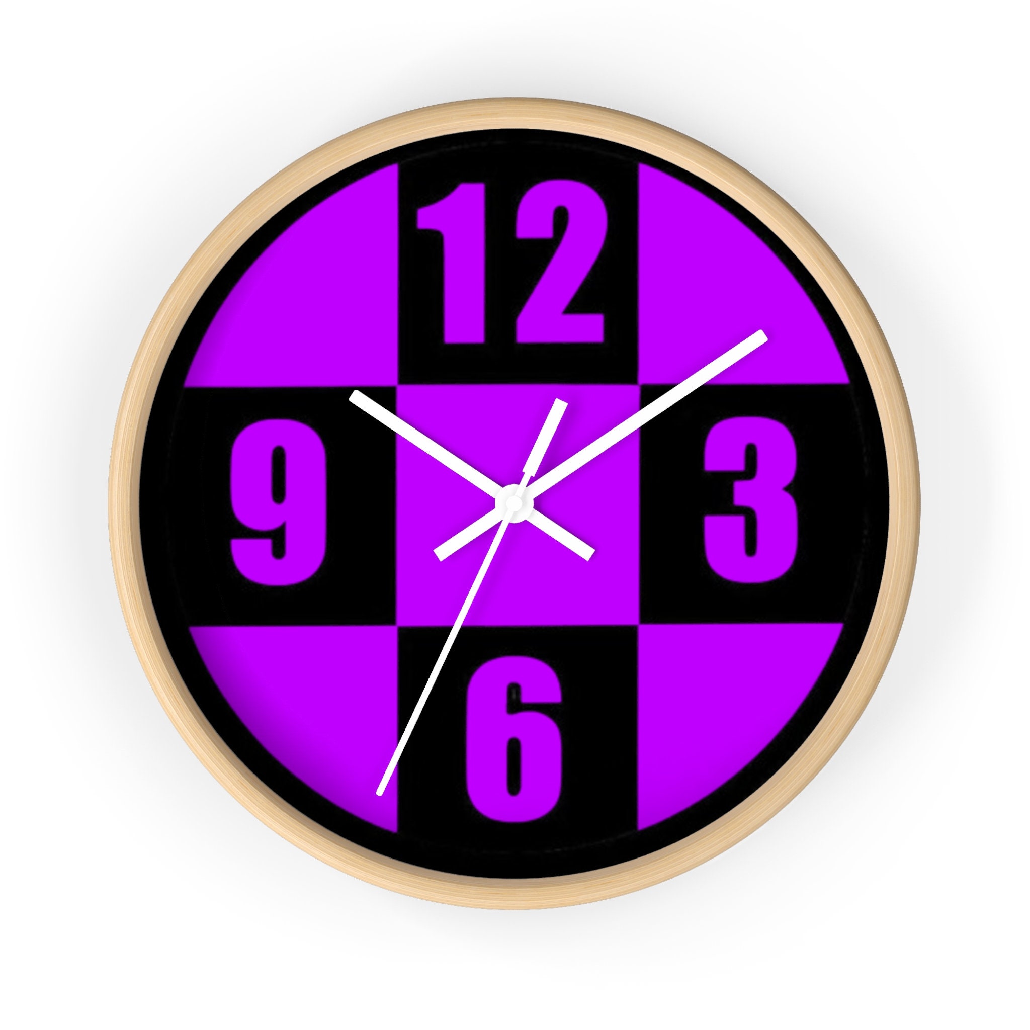 Purple Checker Clock, Checker Clock, Checkered Wall Clock, Geometric ...