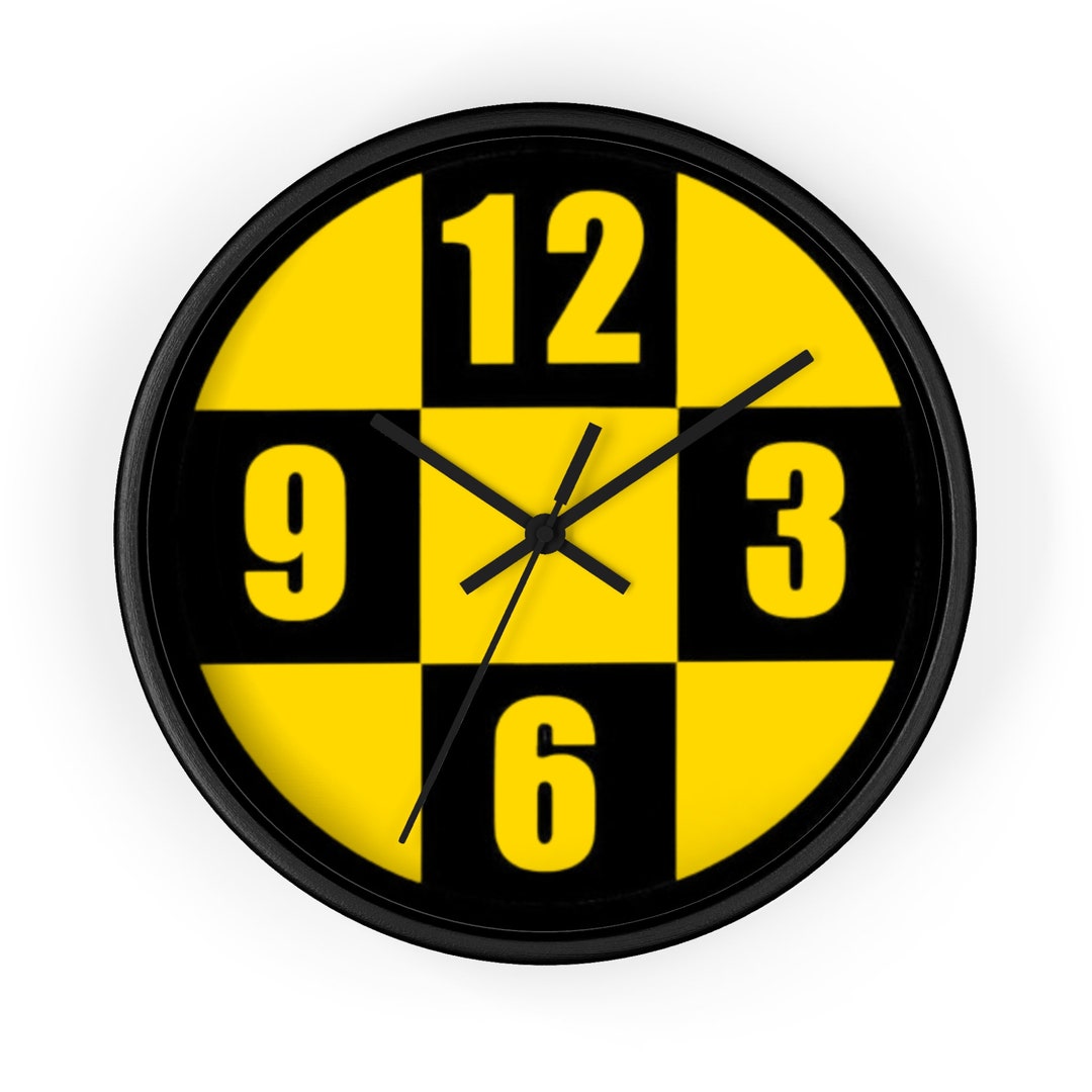 Yellow Checker Clock, Checker Clock, Checkered Wall Clock, Geometric ...