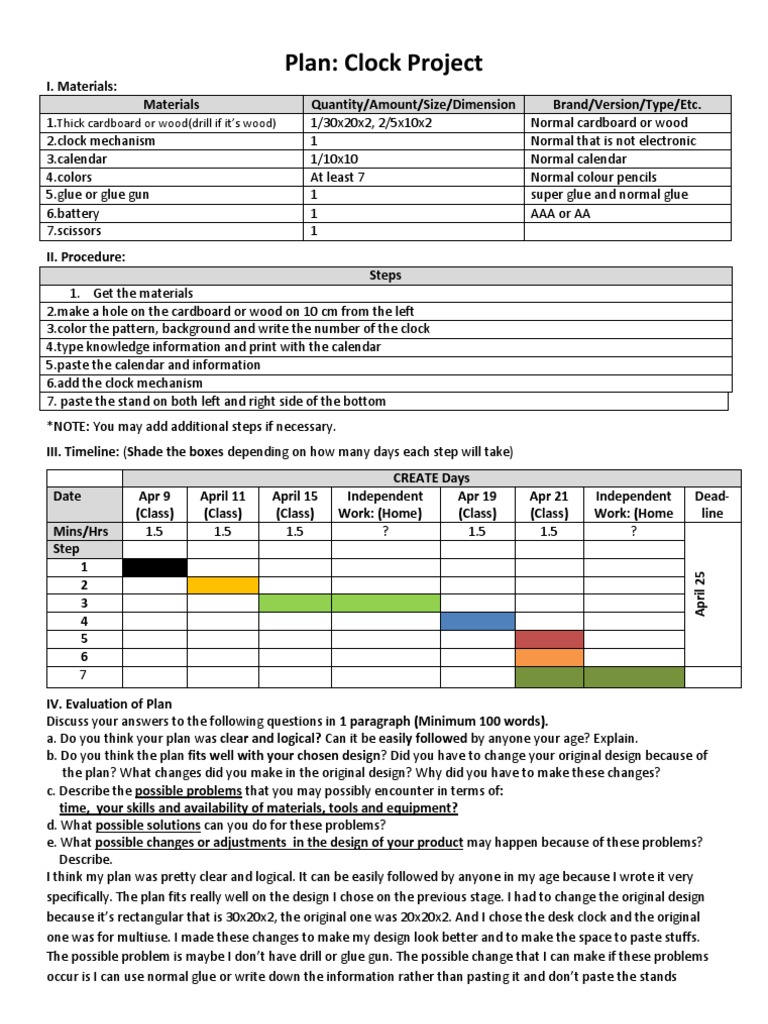 Manufacturing Process Project: Clock Procedures by Technology and ...