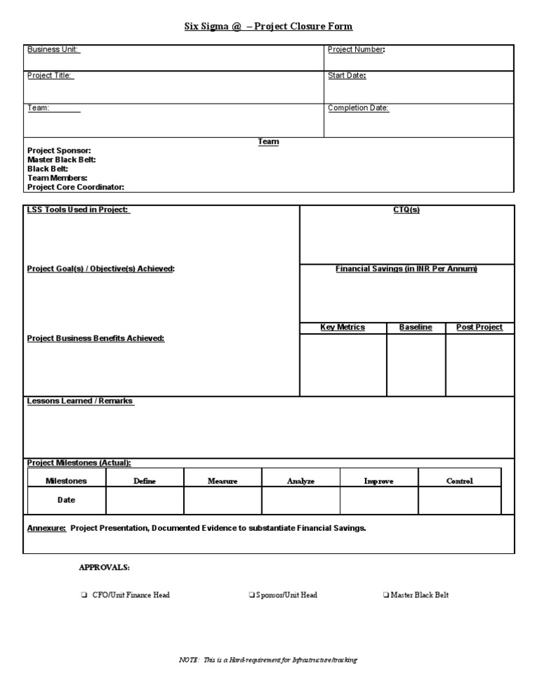Six Sigma Project Closure Form Template | PDF