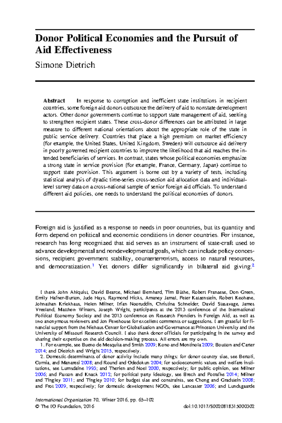 Donor Political Economies and Aid Effectiveness: A Comparative Analysis ...