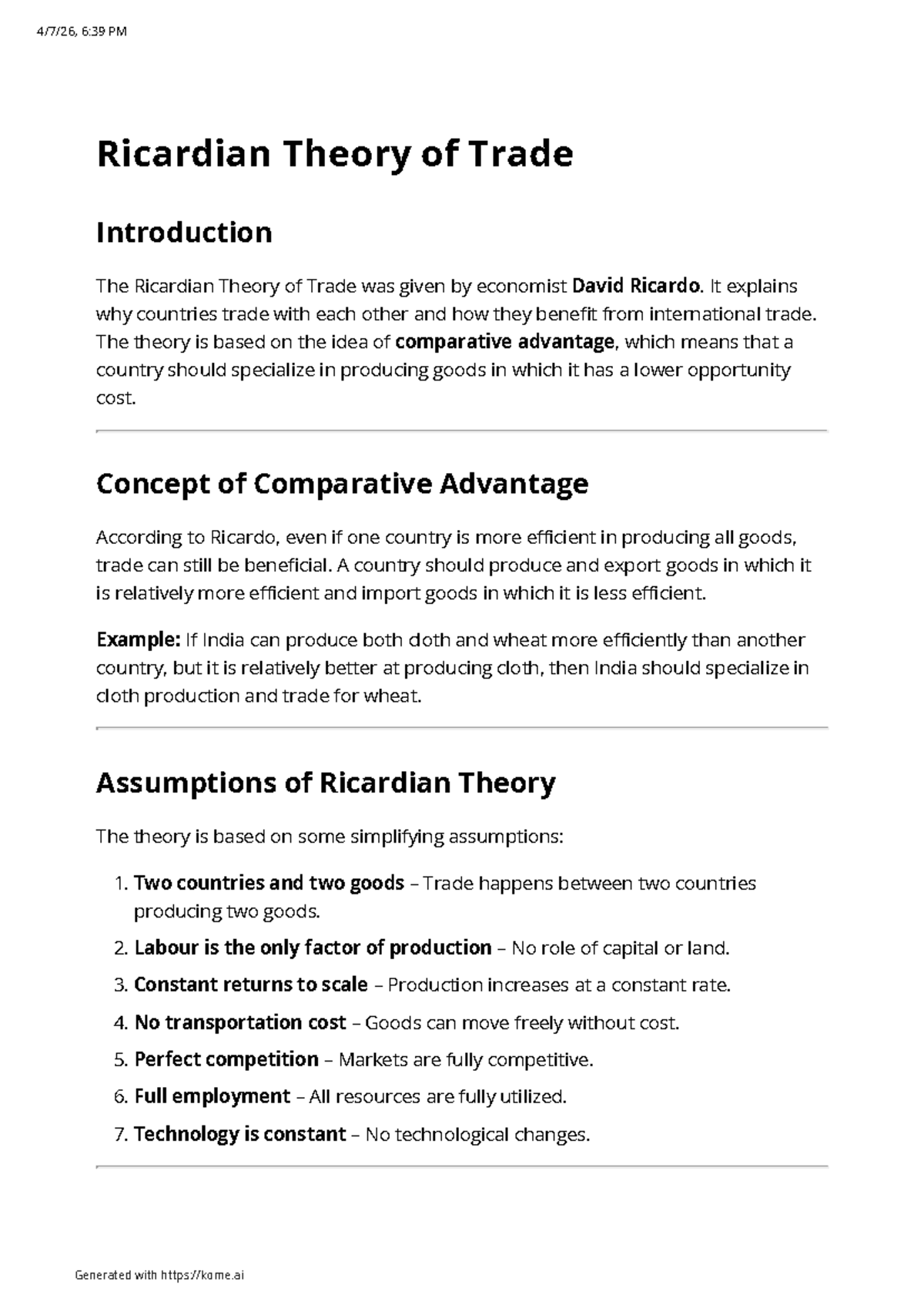 Ricardian Theory of Trade: Comparative Advantage Explained - Studocu
