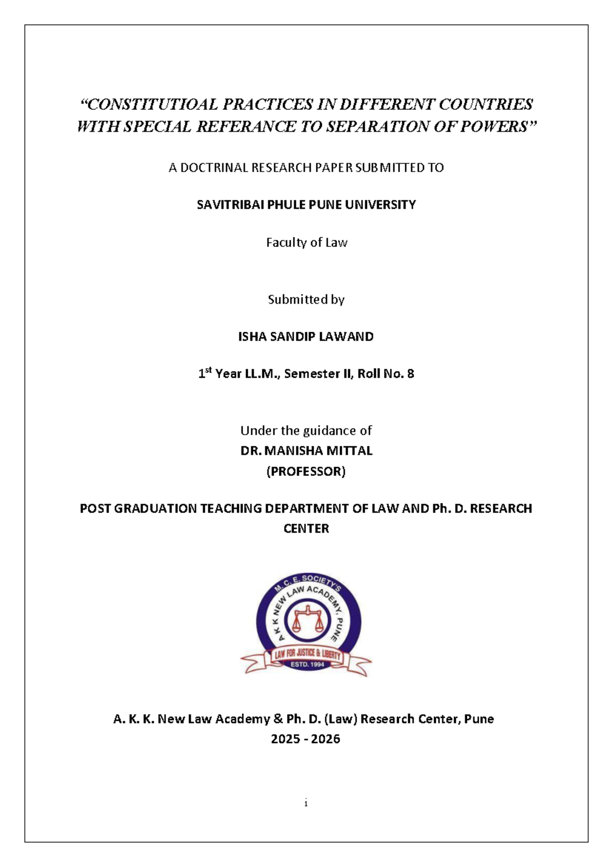 Comparative Study of Separation of Powers: LL.M. 1st Year Research ...