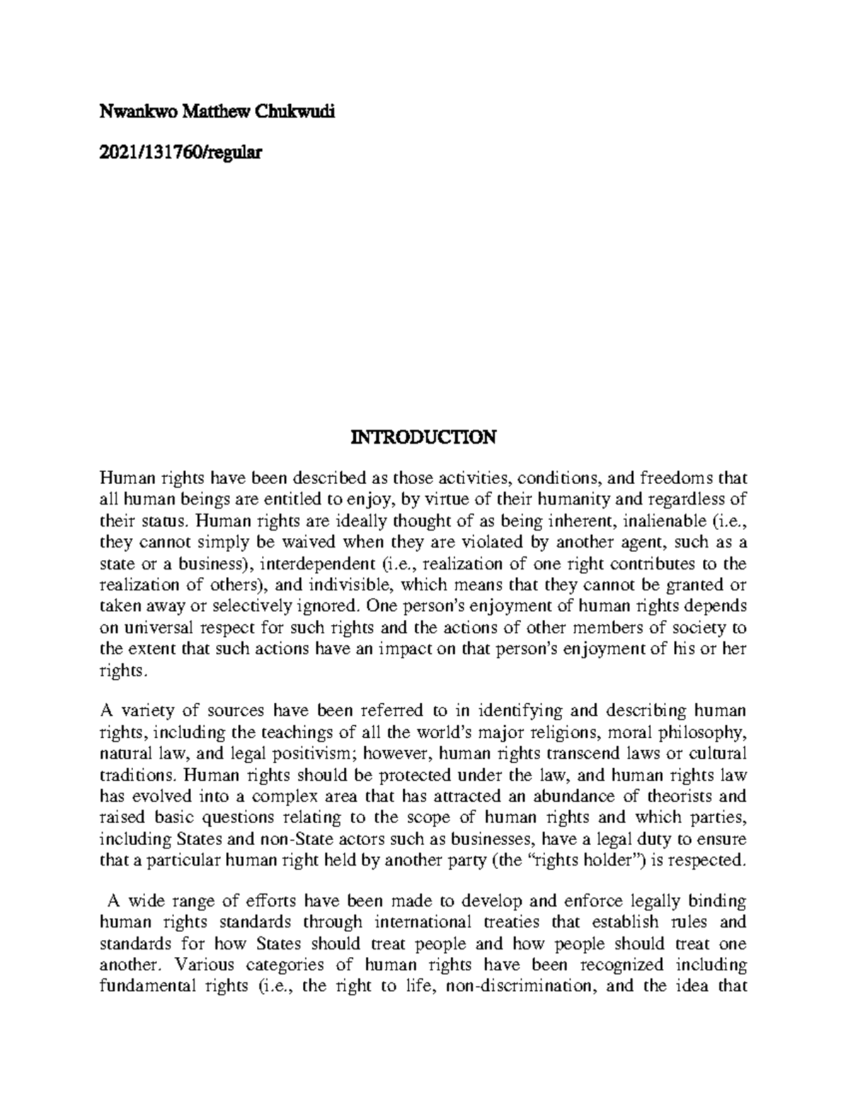 HUMAN RIGHTS: A COMPARATIVE STUDY OF TRADITIONAL AND MODERN ...