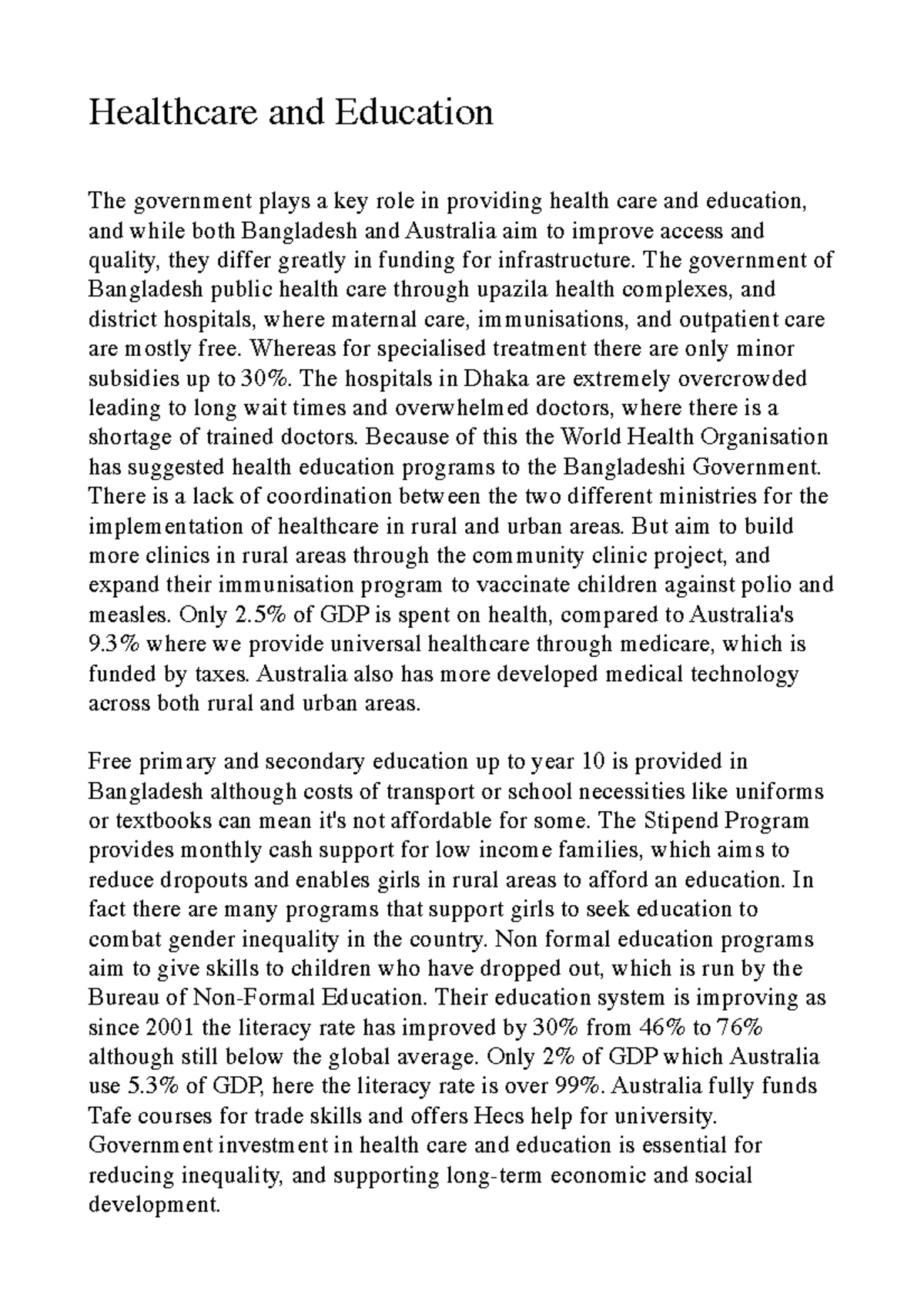 Comparative Study of Healthcare & Education in Bangladesh and Australia ...