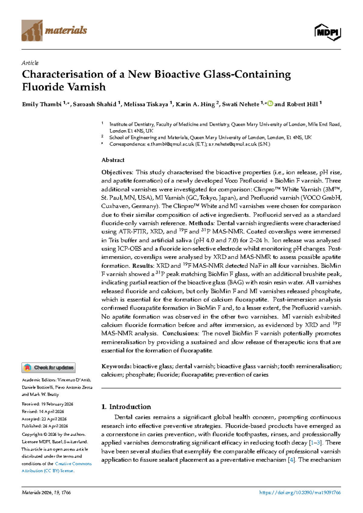 Characterisation of Bioactive Fluoride Varnishes: A Comparative Study ...