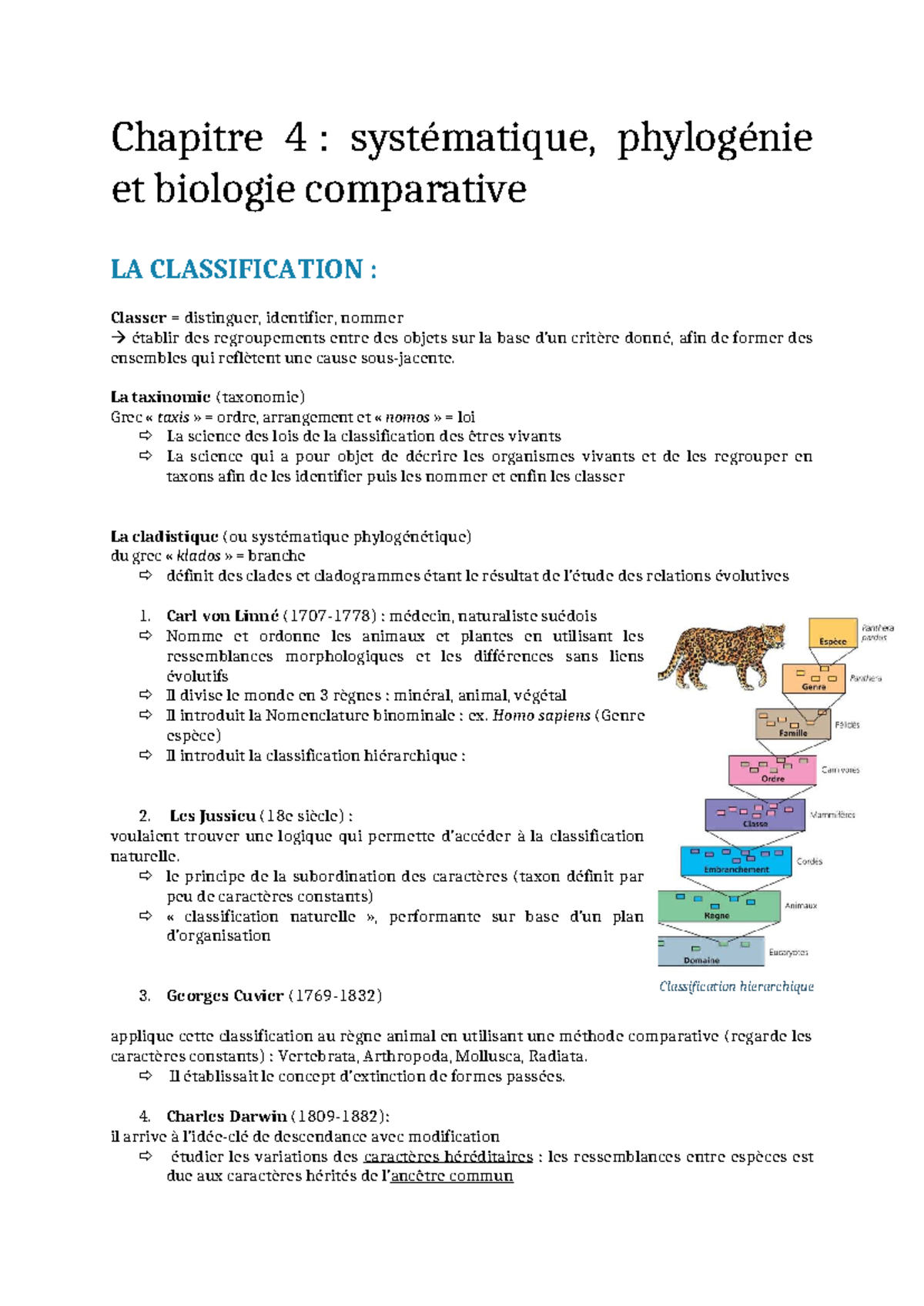 Chapitre 4 : Systématique, Phylogénie et Biologie Comparative - Studocu