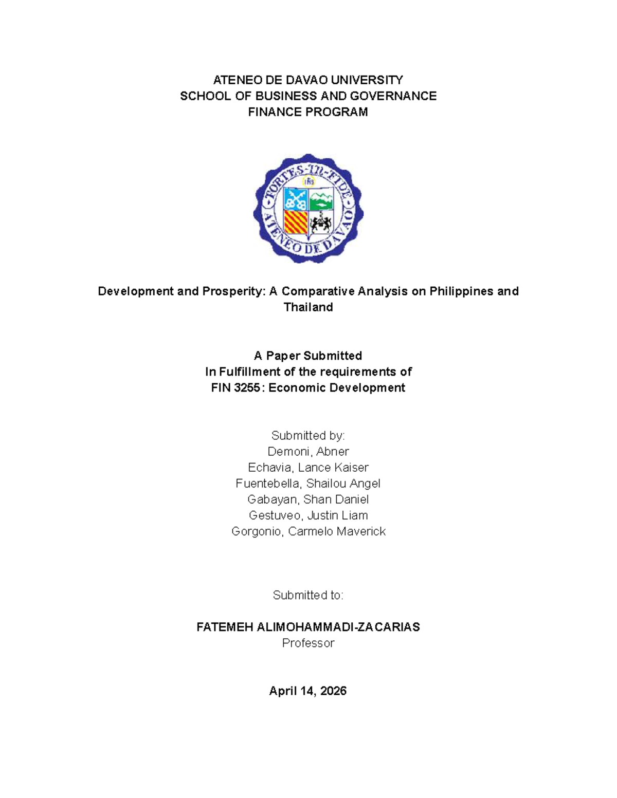 FIN 3255: Development and Prosperity - A Comparative Study of the ...