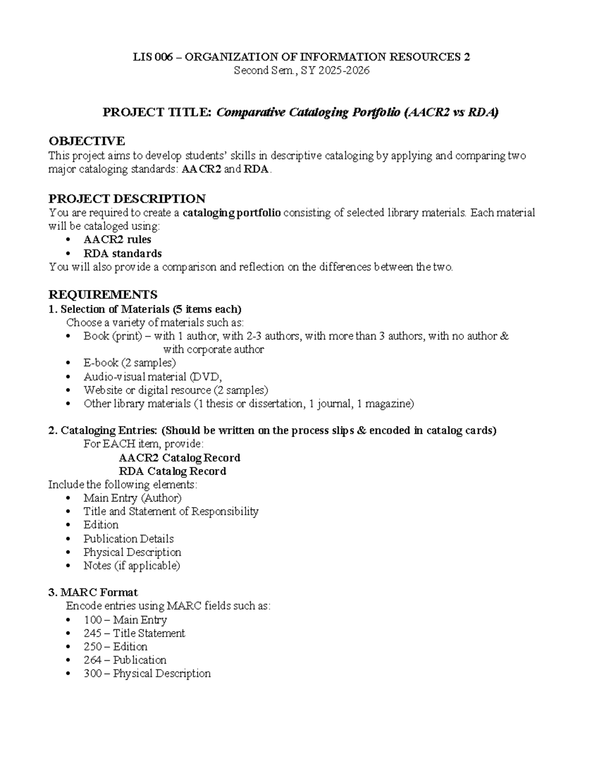 LIS 006 Final Project: Comparative Cataloging Portfolio (AACR2 vs RDA ...