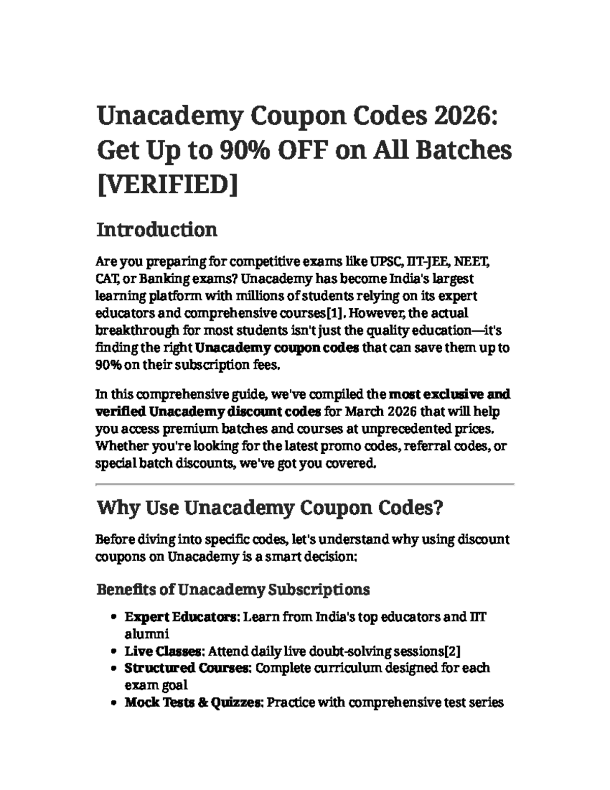 Unacademy Coupon Codes 2026: Save Big on All Batches - Studocu