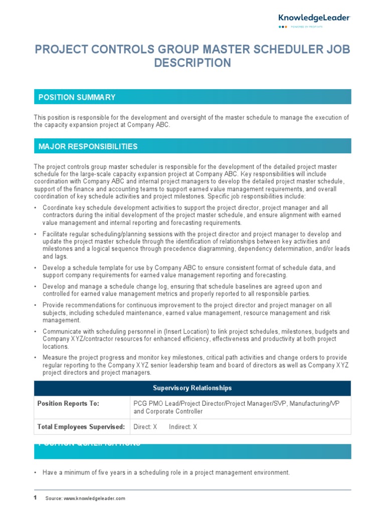 Project Controls Engineer Job Description - Planning Engineer FZE.