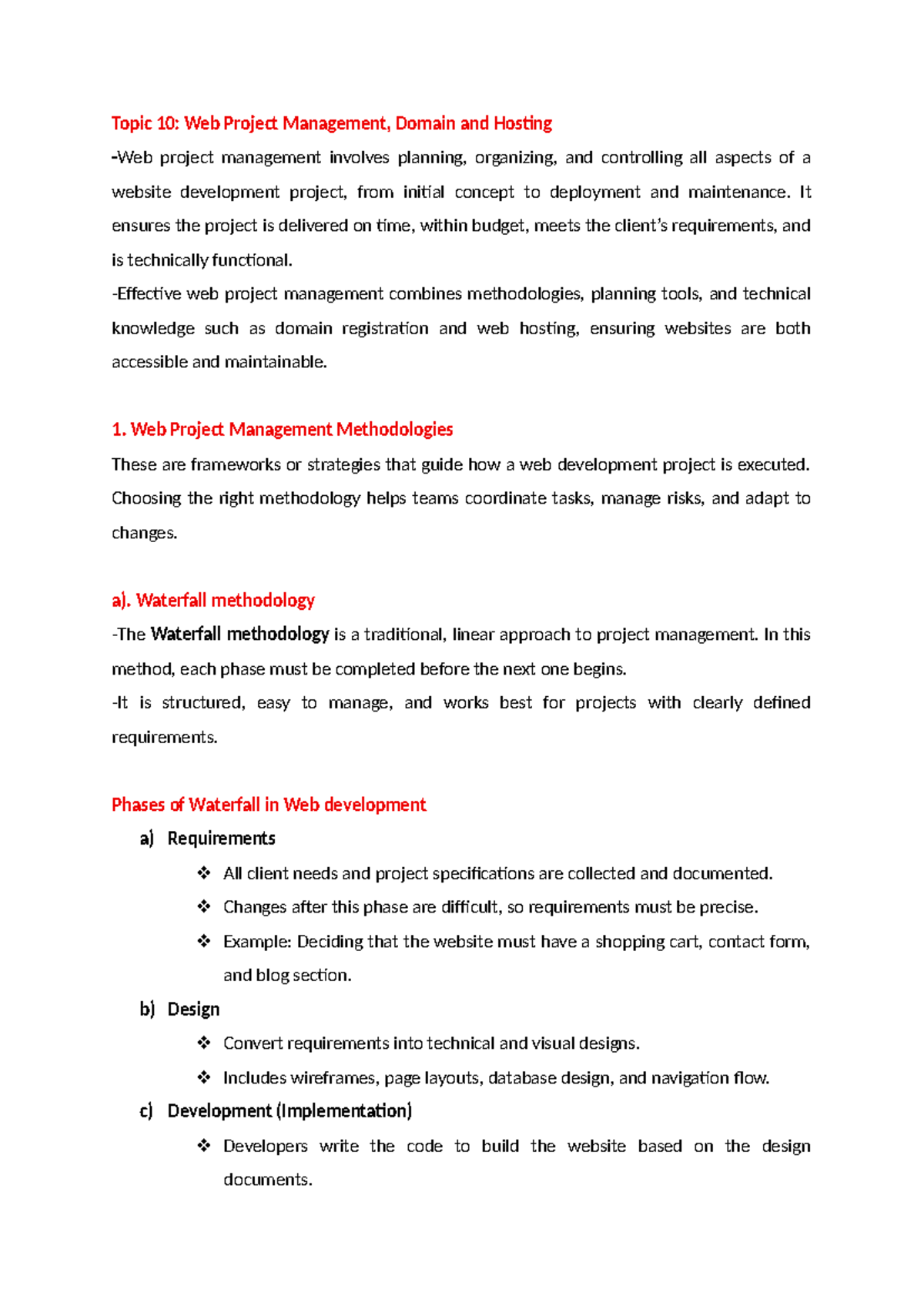 Topic 10: Web Project Management & Domain Hosting Essentials - Studocu