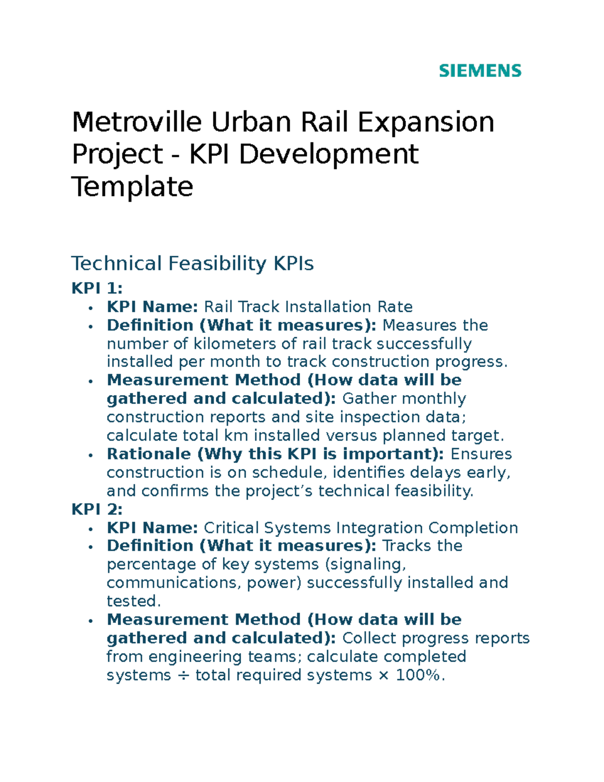 Metroville Urban Rail Expansion Project KPI Development Template - Studocu