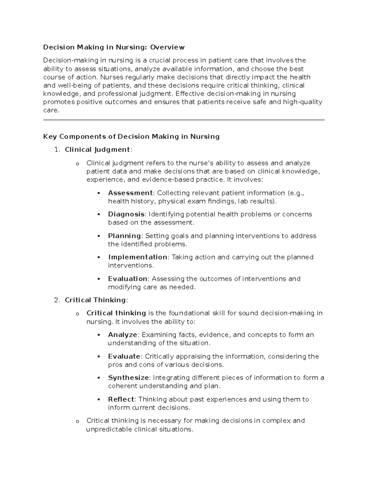 Decision Making - Nurses regularly make decisions that directly impact ...