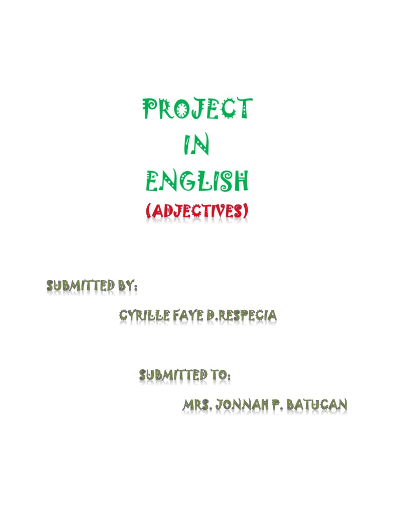 Project Portfolio - ENGLISH PROJECT PORTFOLIO 2022- 2023 Name : Class ...