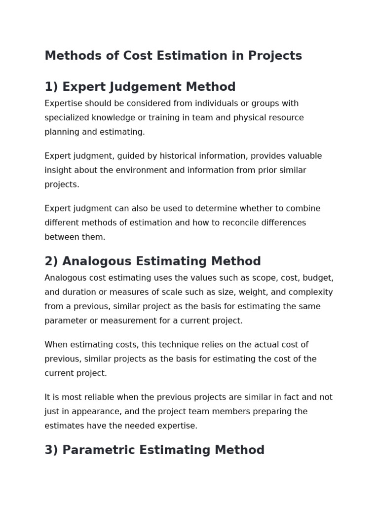 Methods of Cost Estimation in Projects | PDF | Project Management ...