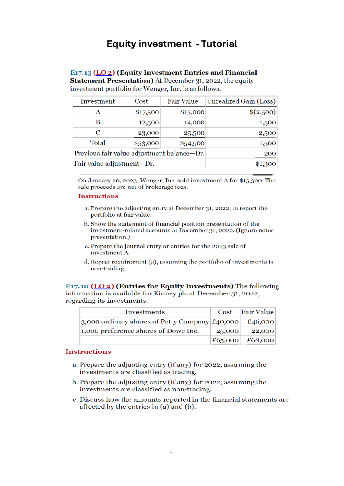 Equity Investment Tutorial 1: Fair Value Method 2024 - Studocu