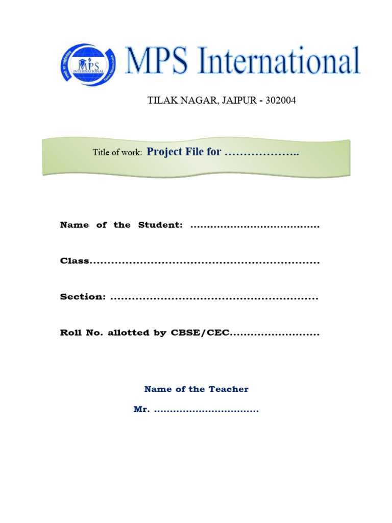 Project File Cover Page Design
