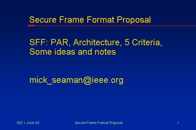 Secure Frame Format Proposal SFF PAR Architecture 5