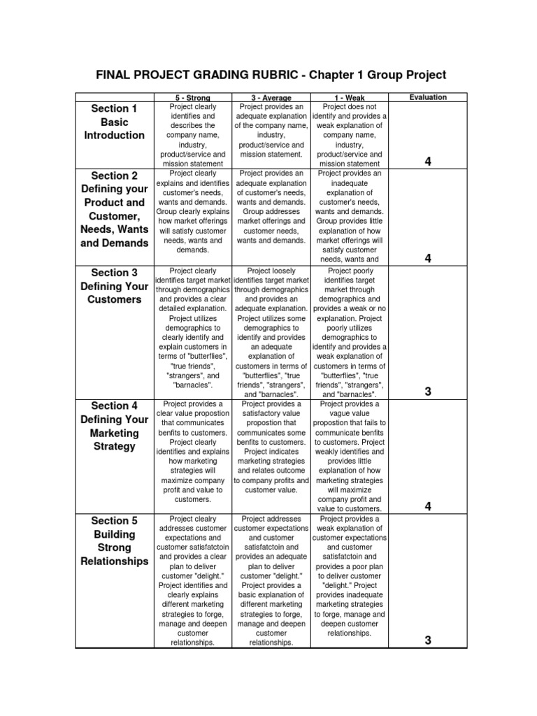 Sample Rubric For Grading Project