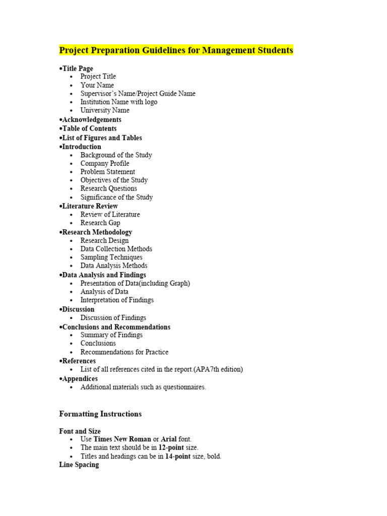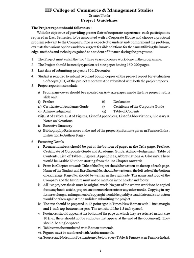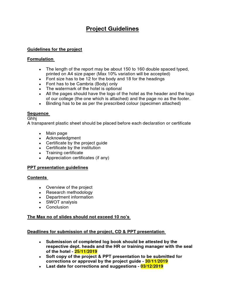 Guideline / Instructions For Project Work Are As Follows | PDF