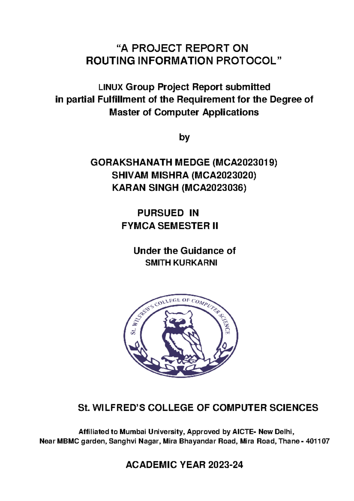 Linux MIN Project - “A PROJECT REPORT ON ROUTING INFORMATION PROTOCOL ...