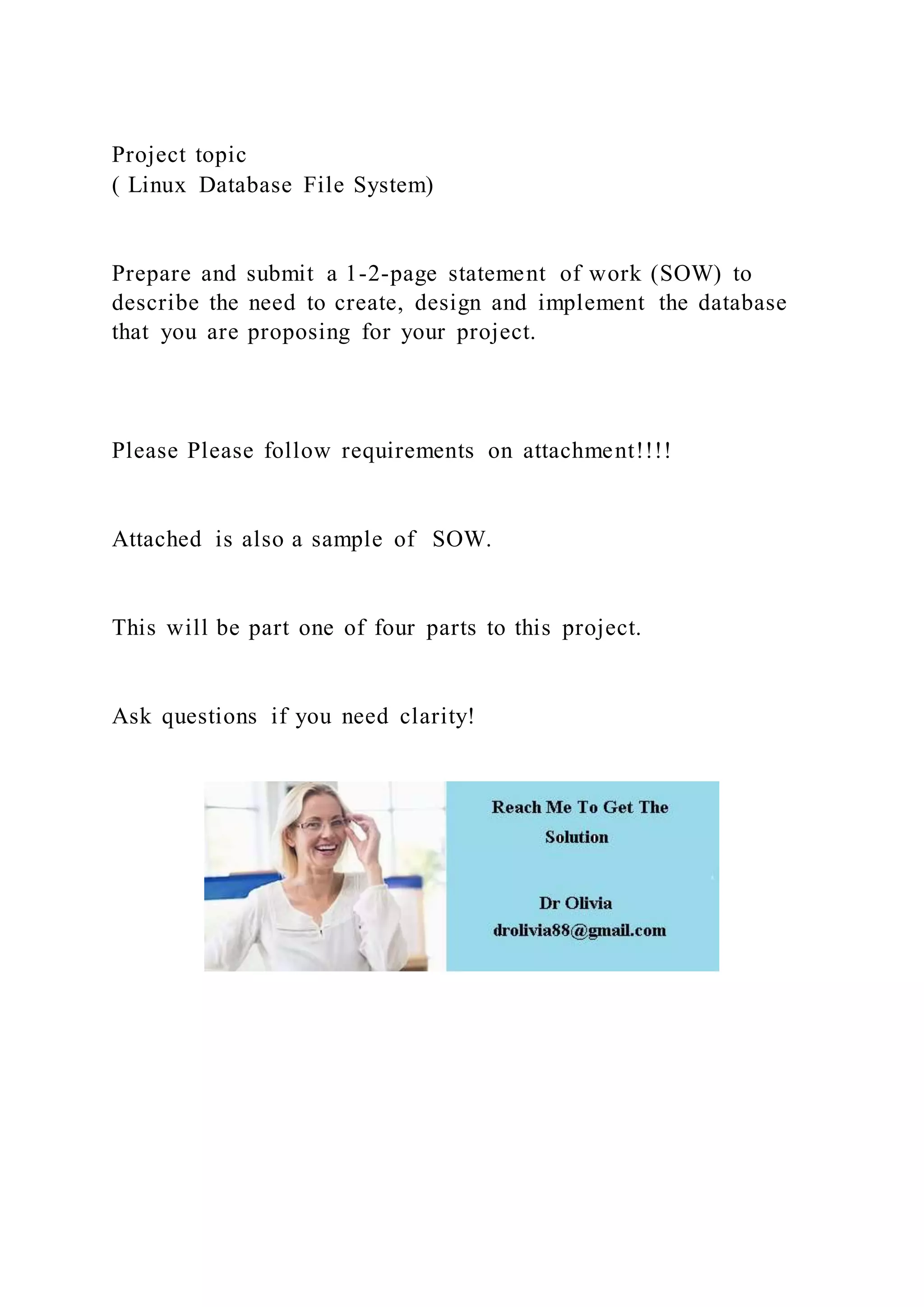 Project topic ( Linux Database File System)Prepare and submi | DOCX
