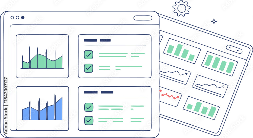 Two interface windows displaying charts and checklists for data ...