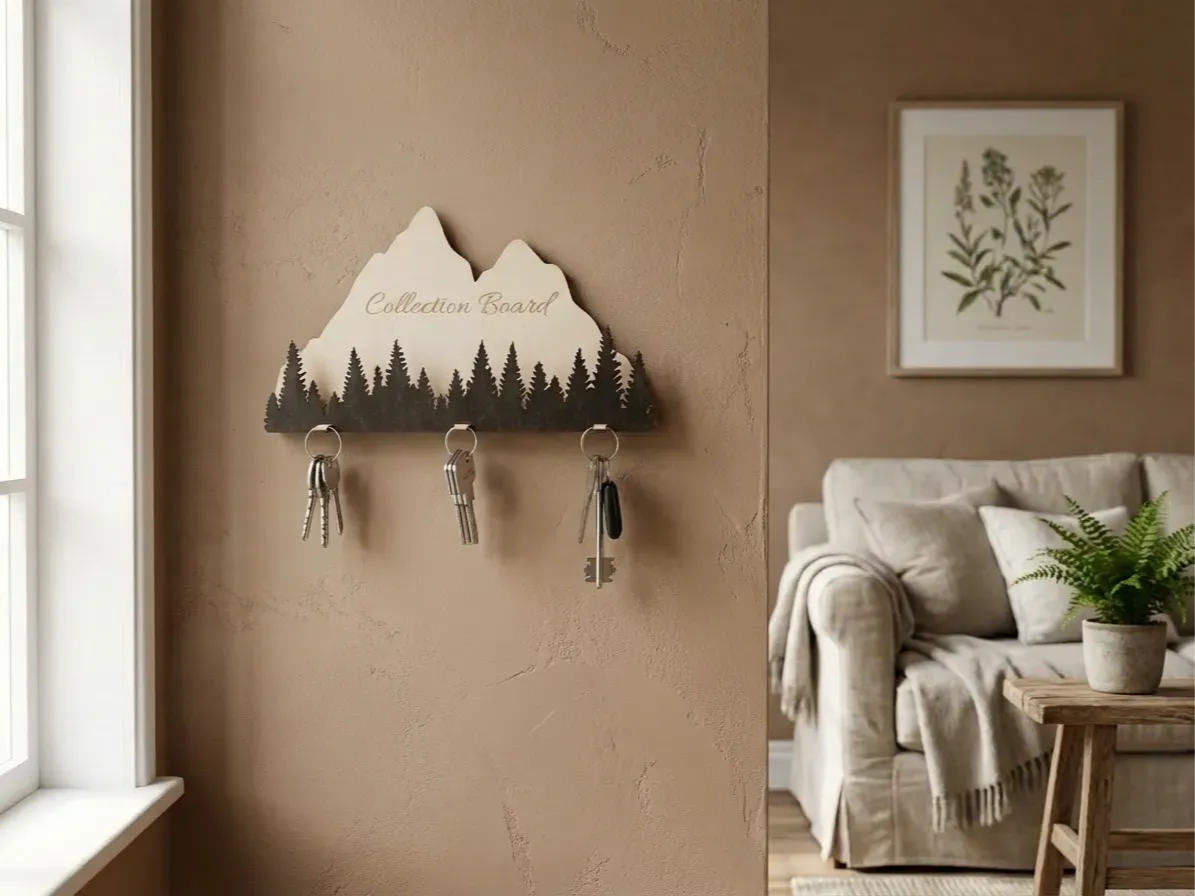 Laser Cut Wooden Mountain Key Holder with Forest Silhouette | Free ...