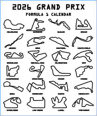 2026 Formula 1 Grand Prix Race Track Calendar Card | Free Files - Atomm