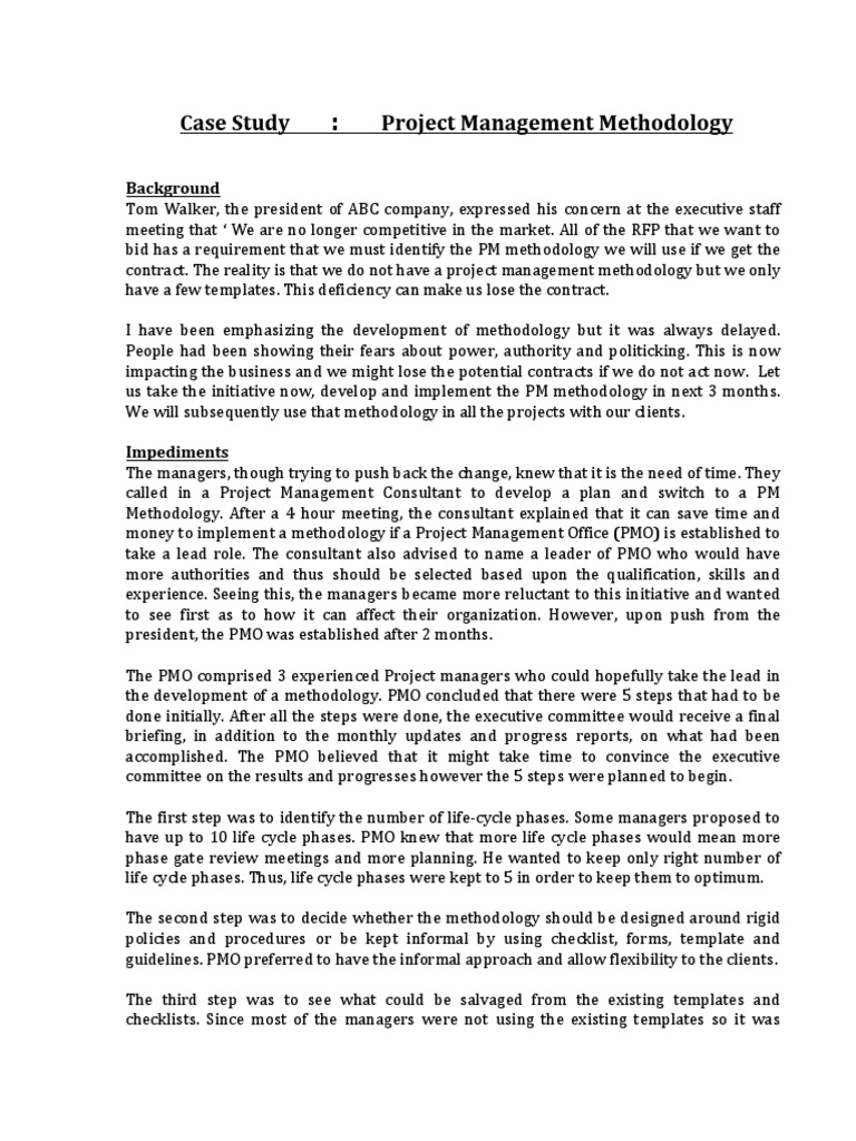 Case Study Project Management Methodology: Background | PDF | Life ...