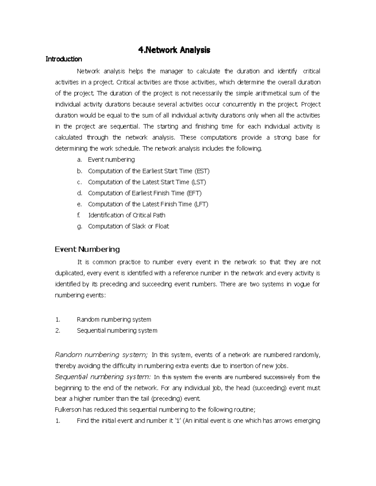 Key Concepts - Project Network - study Material lecturing Notes ...