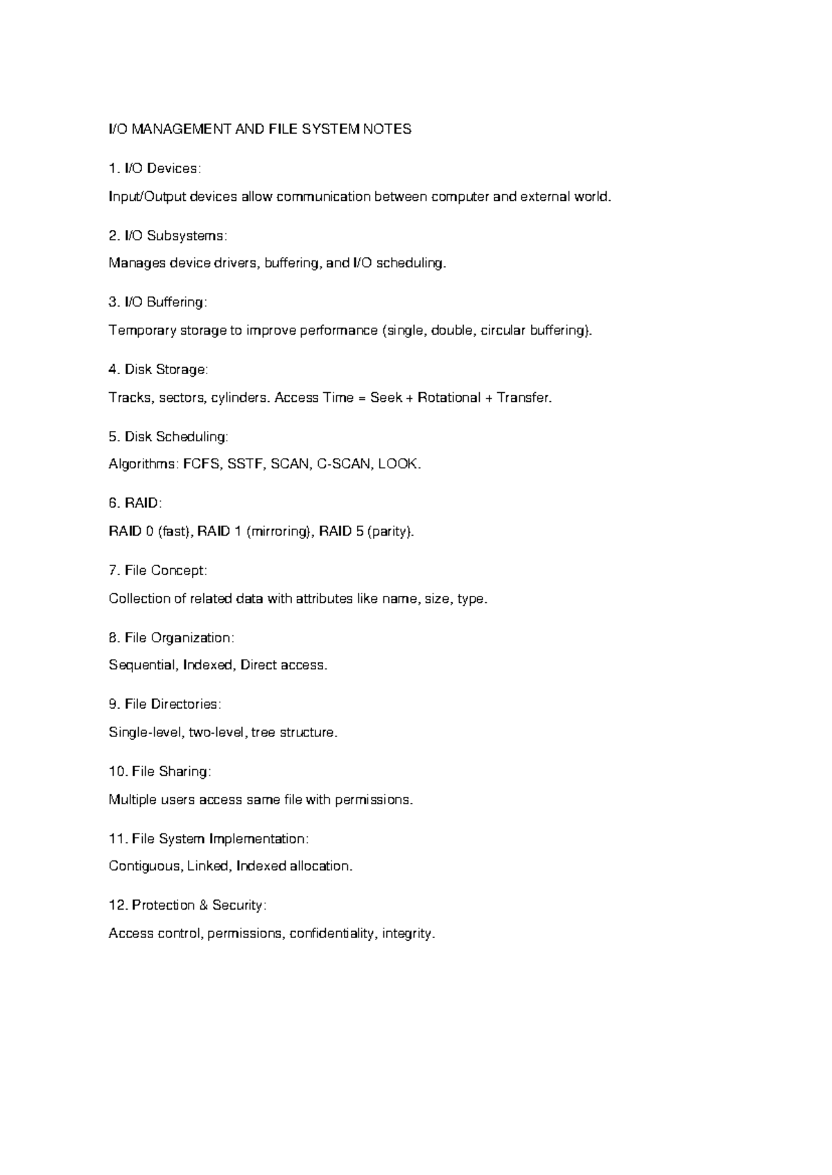IO File System Notes: Management & Structure Overview - Studocu