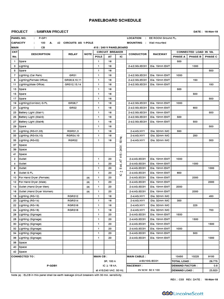 Samyan Project Panelboard Schedule | PDF | Alternating Current | Components