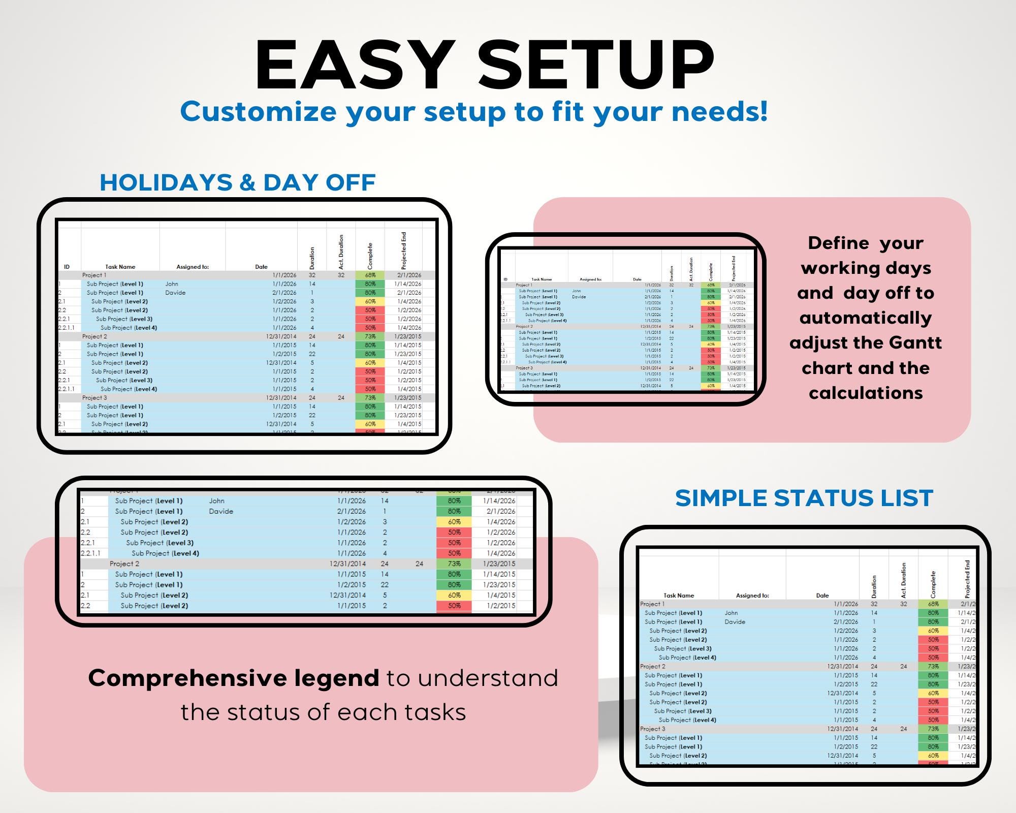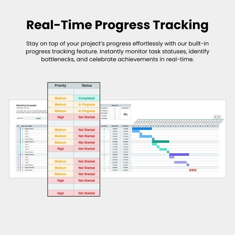 Gantt Chart Excel Template, Project Management Work Planner, Project ...