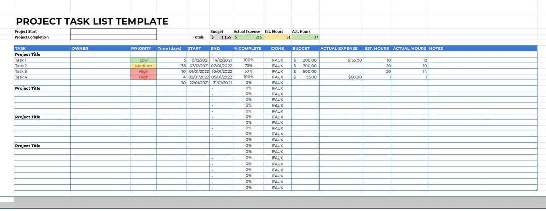 Project Gantt Chart Template - Excel - Google Sheets