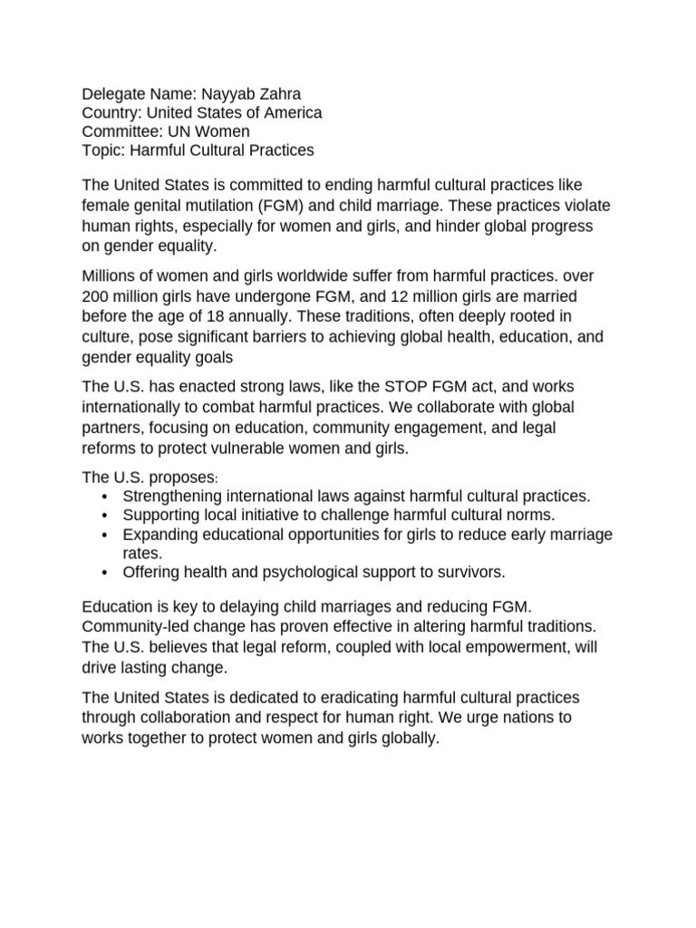 Position Paper Example For NMUN | PDF | Biodiversity | Vocational Education