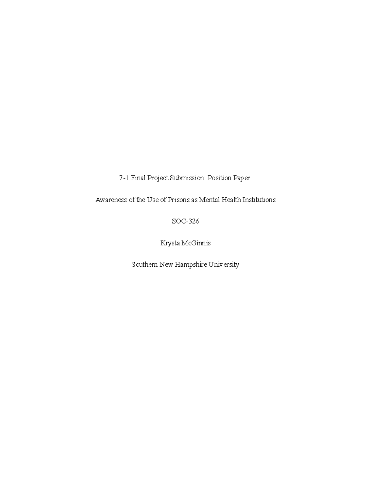 Final Project-Position Paper.docx - Position Paper: Prisons as Mental ...