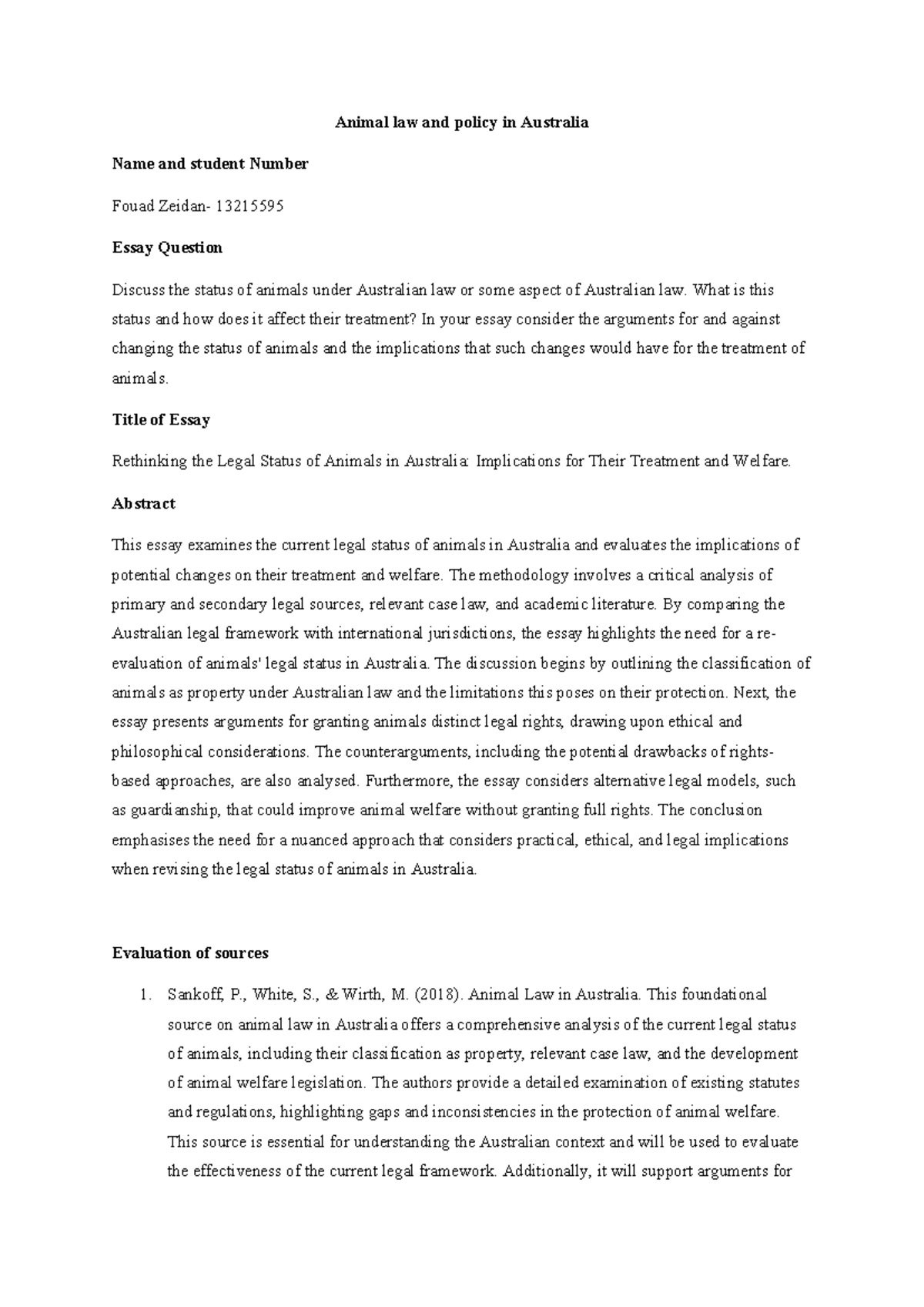 Animal Law (AL101) - Comprehensive Lecture Notes on Legal Status ...