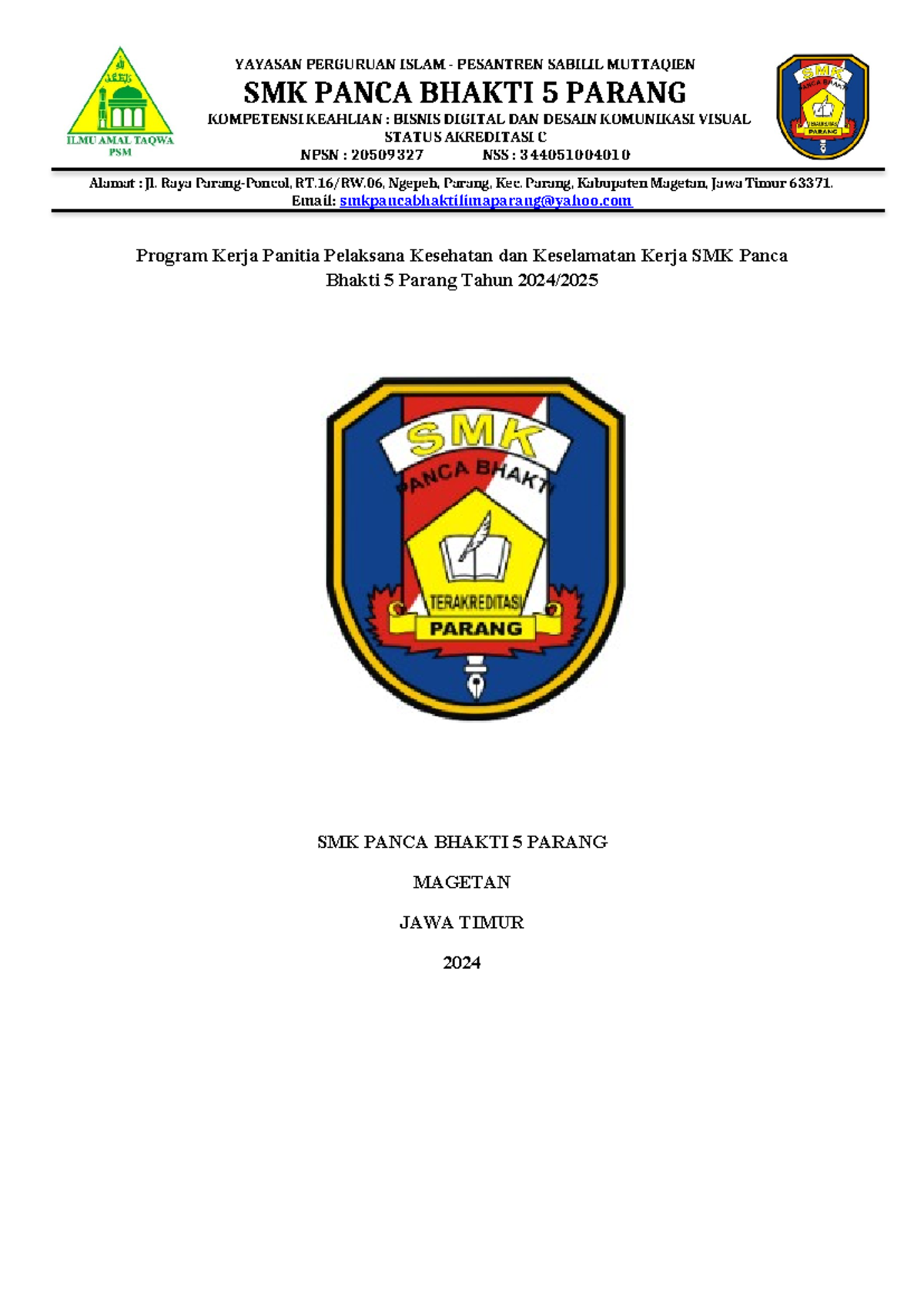 Program Kerja P2K3 SMK Panca Bhakti 5 Parang 2024 - Studocu