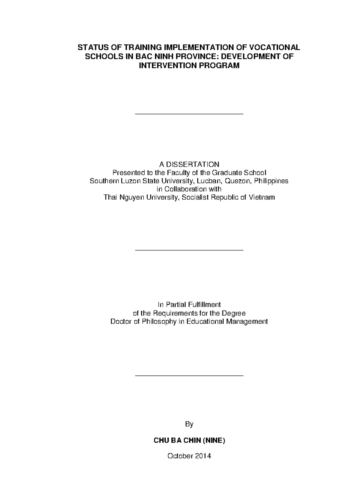 Status of Training Implementation in Bac Ninh Vocational Schools ...
