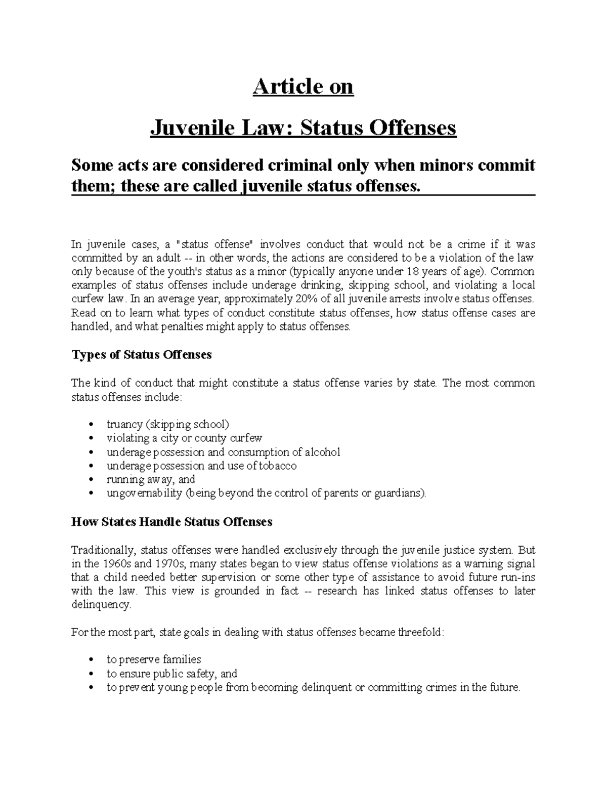Lect. 6 Juvenile Law: Understanding Status Offenses - Studocu