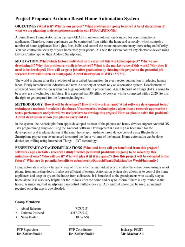Project Proposal: Arduino Based Home Automation System: Objectives ...