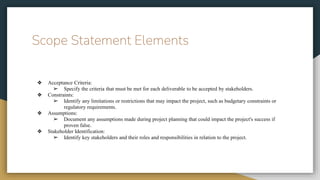 Project Scope Baseline presentation outlining every | PPTX